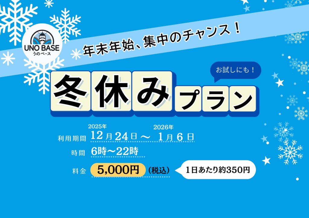 うのベースは、そんな方たちを応援するために「冬休みプラン」を作りました!!
